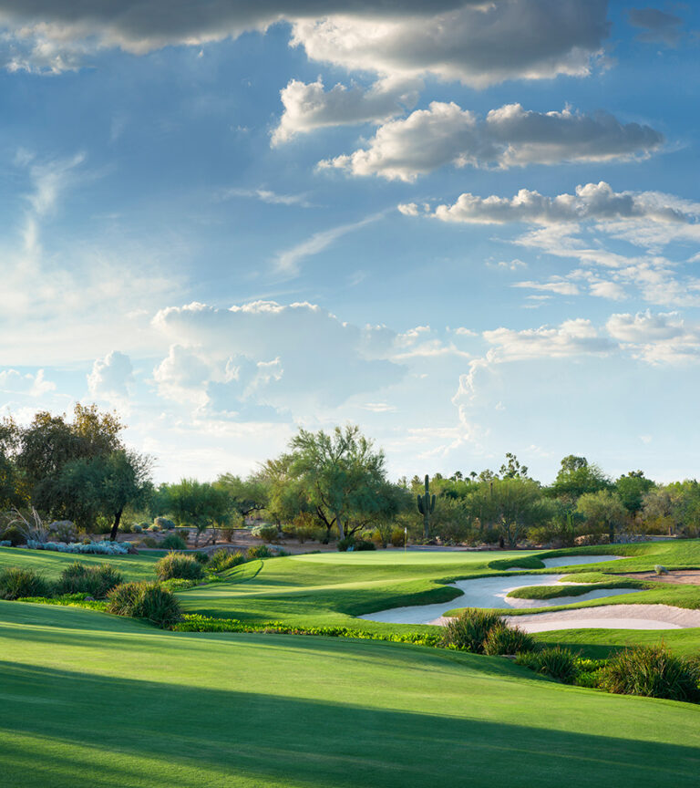 The Tom Fazio-designed Raptor course offers thrilling challenges that command players’ respect through a high-stakes game of risk and reward. Stretching 7,151 yards from the back tees, the par-72 course unfolds over the gentle hills and across shaded natural arroyos found in this picturesque corner of the Sonoran Desert. Most of Raptor’s fairways are generous, and the greens are large with sweeping undulations. Misses tend to find deep greenside bunkers and grass collection areas, making the scramble to get up and down a true test of the short game.