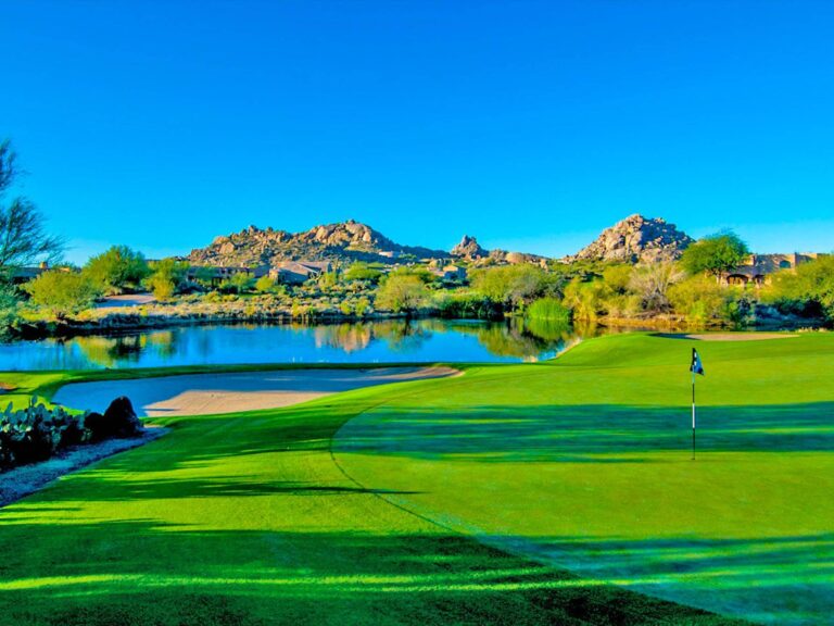 Troon North Golf Club stands as a hallmark of the Scottsdale desert golf experience! With holes stretching through the natural ravines and foothills in the shadows of Pinnacle Peak. Giant granite boulders lie strewn across the rugged landscape of Arizona’s Sonoran Desert, where Troon North Golf Club combines iconic golf